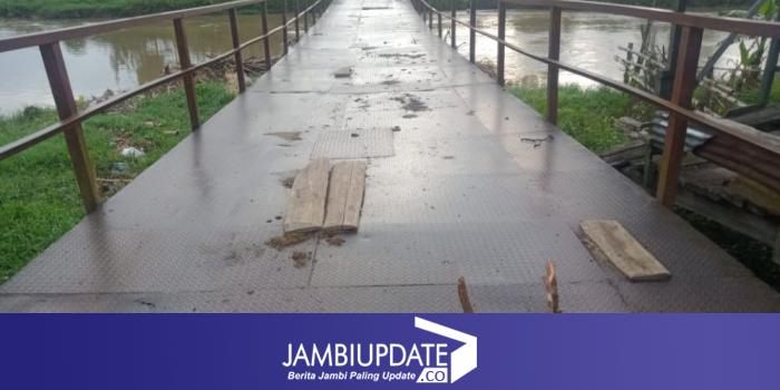 JAMBIUPDATE.CO, KERINCI - Jembatan di Sungai Batang Merao Desa Tanjung Pauh Mudik, Kecamatan Danau Kerinci Barat, Kabupaten Kerinci, sudah bertahun-tahun kondisinya semakin rusak parah.
