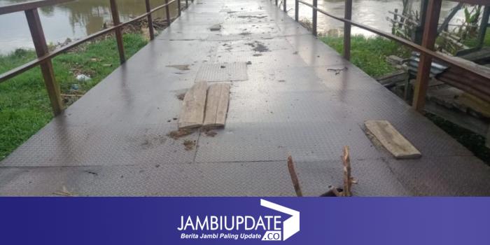 JAMBIUPDATE.CO, KERINCI - Jembatan di Sungai Batang Merao Desa Tanjung Pauh Mudik, Kecamatan Danau Kerinci Barat, Kabupaten Kerinci, sudah bertahun-tahun kondisinya semakin rusak parah.