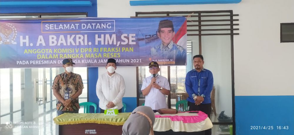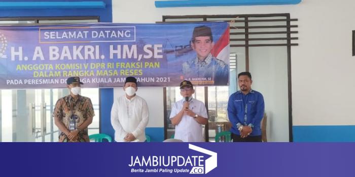 JAMBIUPDATE.CO, MUARASABAK - Anggota Komisi V DPR RI dari Fraksi PAN, H. A Bakri. HM, SE, telah meresmikan Dermaga Kuala Jambi yang berada di Kelurahan Kampung Laut, Kecamatan Kuala Jambi, sebagai dermaga angkutan orang pada Minggu (25/4) sore.