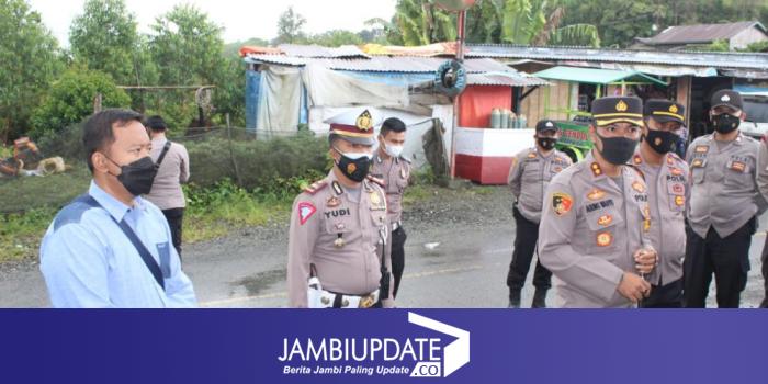 Kasatlantas Polres Kerinci AKP AKP Yudistira saat mendampingi Kapolres Kerinci AKBP Agung WN mengunjungi salah satu pos penyekatan mudik di batas Kerinci-Sumbar