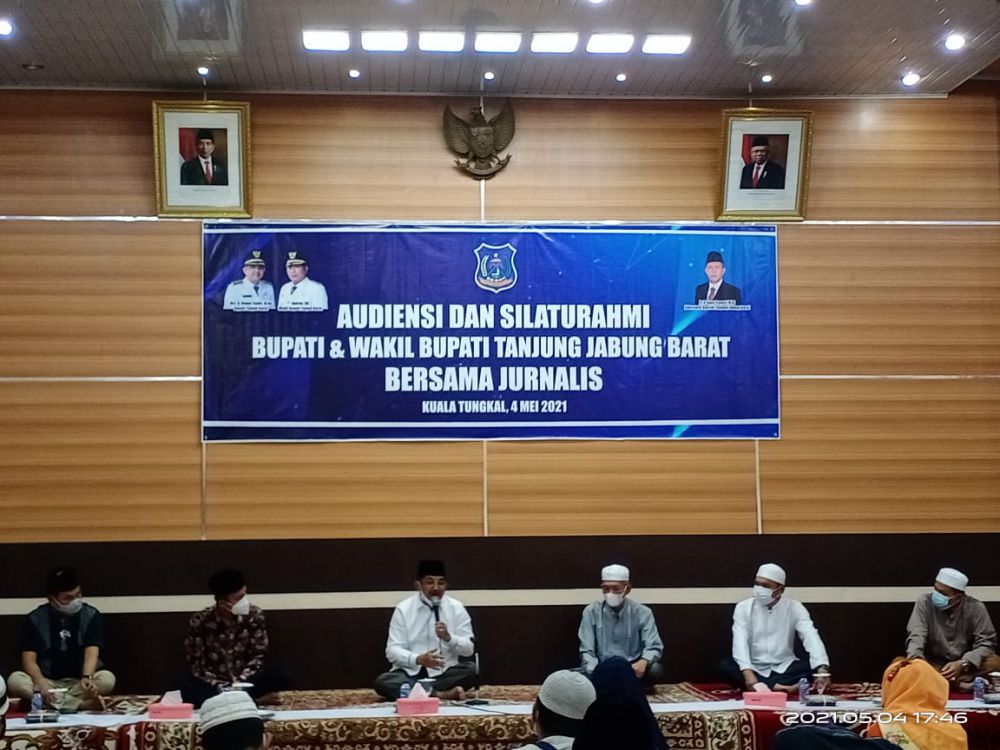 JAMBIUPDATE.CO, KUALATUNGKAL - Bupati Tanjung Jabung Barat, Drs. H. Anwar Sadat M.Ag sangat mengapresiasi kinerja teman teman jurnalis yang berkerja di daerah Kanupaten Tanjung Jabung Barat. Hal tersebut diungkapkan Bupati ketika menggelar acara audiensi dan silaturahmi Bupati dan Wakil Bupati Tanjung Jabung Barat bersama jurnalis.