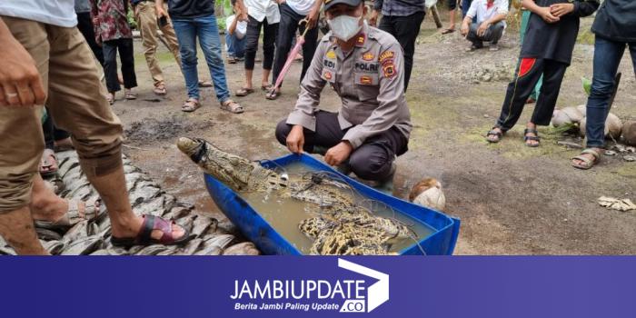 JAMBIUPDATE.CO, KUALATUNGKAL - Warga di RT 03 Desa Parit Bilal Kecamatan Pengabuan Kabupaten Tamjung Jabung Barat di resahkan oleh kemunculan buaya muara. Satu dari tiga buaya muara yang sering muncul, diperkirakan ukuran buaya tersebut kurang lebih 2,5 sd 3,5 meter sudah ditangkap warga bersama pihak kepolisian.