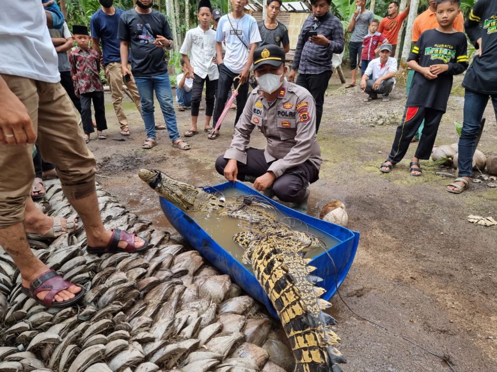 Setelah diamankan, buaya langsung dibawa kepolsek yang nantinya akan dibawa BKSDA. Saat ini BKSDA tengah menuju pengabuan.