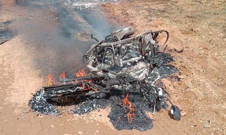 Dari Informasi yang berhasil dihimpun, sepeda motor yang membawa 6 Galon BBM dari SKB Muara Bungo Menuju Desa Rimbo Mulyo, Tepat di Jalan 23 tidak jauh dari Kantor PTPN 6 Motor tersebut terbakar.