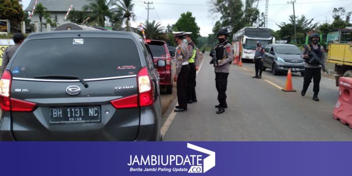 JAMBIUPDATE.CO, MUARA BUNGO - Penyekatan arus mudik lebaran Idul Fitri 1442 H terus dilakukan di pos perbatasan Jambi - Sumatra Barat, yang berada di Jalan Lintas Sumatera KM 50 tepatnya di depan kantor Camat Jujuhan, Rabu (19/5).