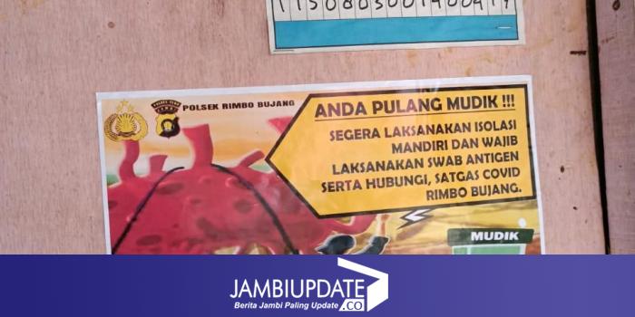 ‘’Kami membuat stiker khusus sebagai tanda bahwa masyarakat tersebut harus melaksanakan kewajiban setelah mudik lebaran Idul Fitri 1442 H. Rumah masyarakat yang mudik kita pasang, nanti jika telah kembali mereka harus melapor, kemudian melakukan swab," tegas Kapolsek Rimbo Bujang IPTU Cindo Kottama.