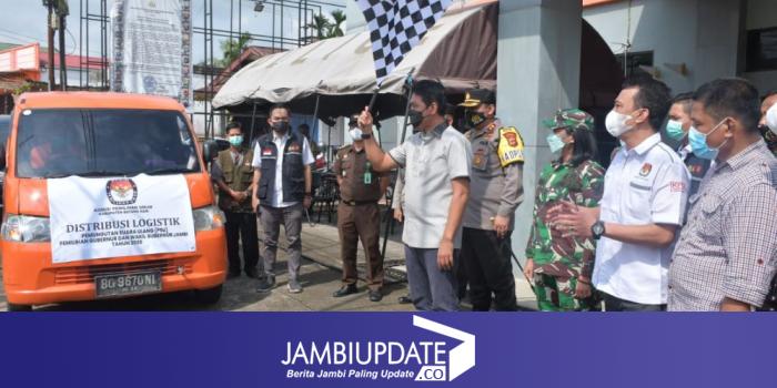 JAMBIUPDATE.CO, BATANGHARI - Komisi Pemilihan Umum (KPU) Kabupaten Batanghari mendistribusikan logistik Pemungutan Suara Ulang (PSU) Pemilihan Gubernur dan Wakil Gubernur Provinsi Jambi. Pendistribusian tersebut langsung dilepas oleh Bupati Batanghari Muhammad Fadhil Arief, dan di saksikan oleh Kapolres Batanghari AKBP Heru Ekwanto, didampingi oleh Ketua KPU Batanghari A.Kadir, Bawaslu Batanghari, Kejaksaan Negeri Batanghari dan TNI. Rabu (26/05).