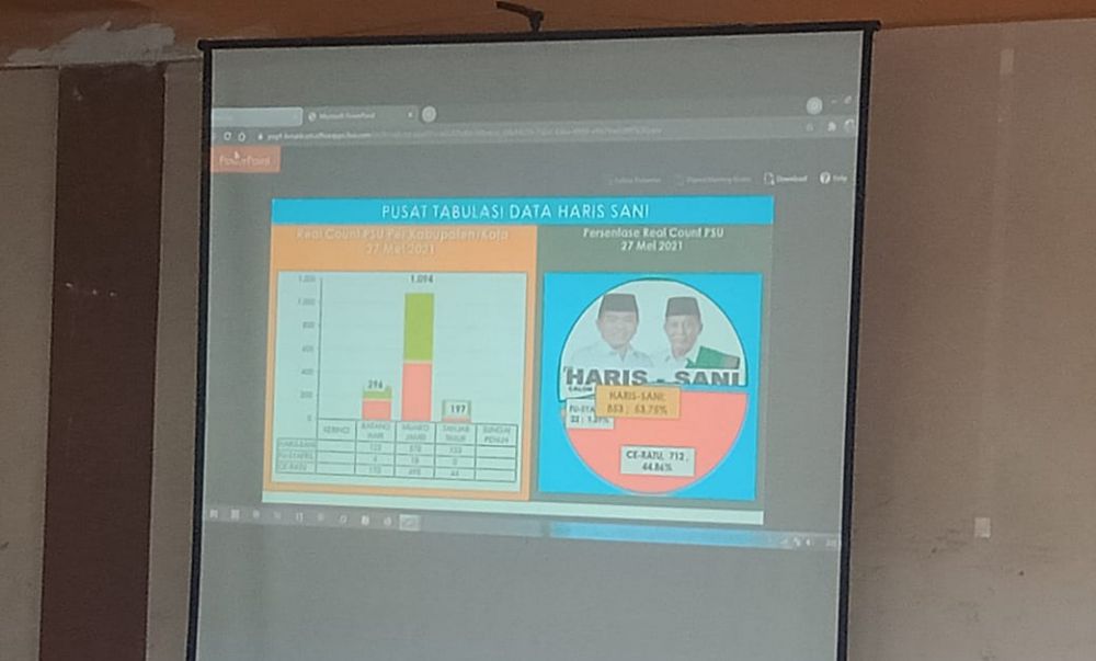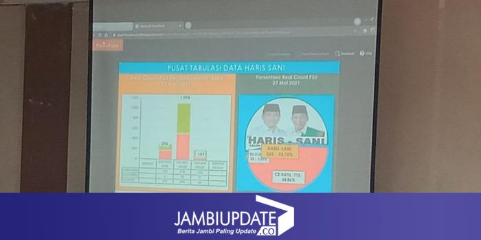 Data yang di-update pukul 14.00 WIB, pasangan Haris-Sani masih unggul dari pesaingnya dengan perolehan Haris-Sani 853 suara atau 53,75 persen.