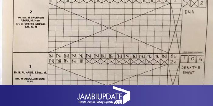 JAMBIUPDATE.CO, BATANGHARI - Hasil penghitungan suara pada Pemungutan Suara Ulang (PSU) Pemilihan Gubernur dan Wakil Gubernur Provinsi Jambi di TPS 01 Desa Napal Sisik Kecamatan Muara Bulian sudah selesai. Kamis (27/05).