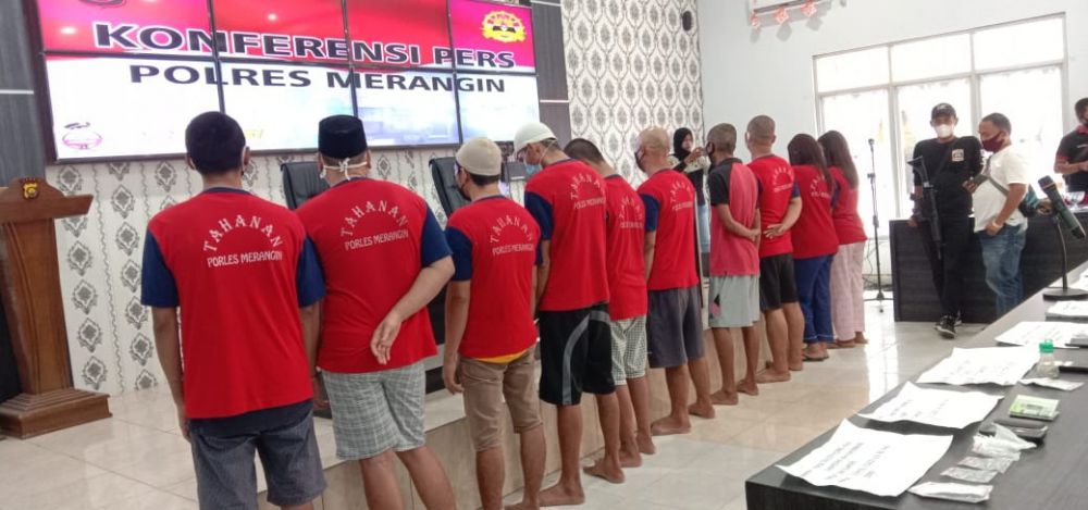 “Sebanyak sepuluh pelaku telah diamankan beserta barang bukti sabu, dua diantaranya perempuan, satu orang bandar atau pengedar," kata Kapolres Merangin saat konferensi pers Jumat siang (04/06).