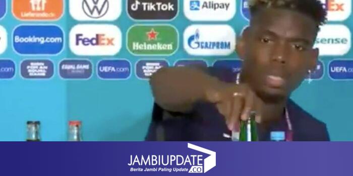 Pemain terbaik pertandingan itu, Paul Pogba tertangkap kamera menyingkirkan botol alkohol yang ada di hadapannya.