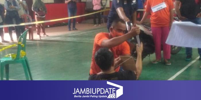 Saat rekonstruski diperagakan 33 adegan pembunuhan yang terjadi di Kawasan Lorong Pajero RT. 23, Bagan Pete, Kecamatan Alam Barajo, Kota Jamb, beberapa pekan lalu.