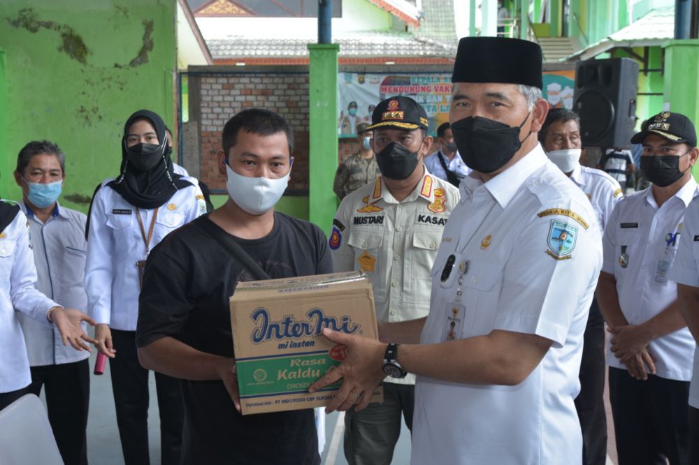 Rabu pagi (23/6), Wali Kota Jambi serahkan secara simbolis bantuan jaring pengaman sosial (JPS) kepada perwakilan pedagang dan pelaku UMKM dari berbagai titik lokasi publik yang dilakukan penutupan total oleh Pemkot Jambi. Tercatat sebanyak 378 pelaku UMKM yang mendapat bantuan sosial berupa paket sembako tersebut.