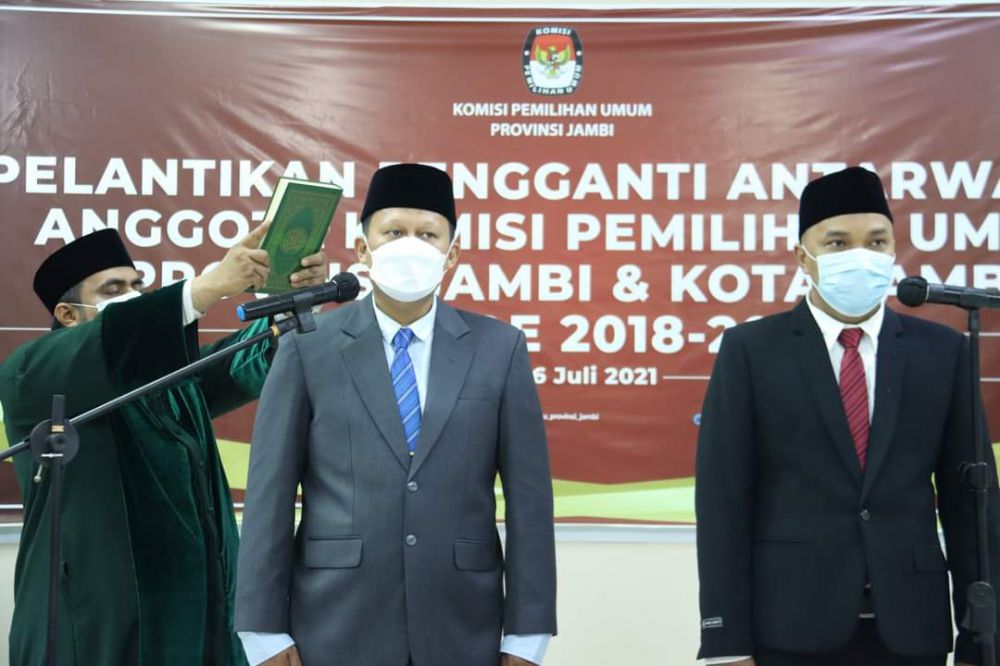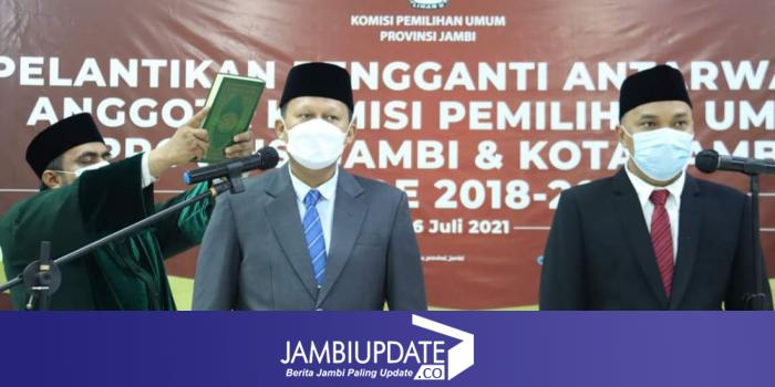 Pelantikan ini dilaksanakan melalui Zoom metting di Aula Kantor KPU Provinsi Jambi, Selasa 6 juli 2021, Ketua Komisi Pemilihan Umum (KPU) Republik Indonesia Ilham Saputra melantik langsung.