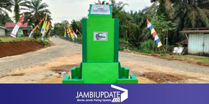 JAMBIUPDATE.CO, JAMBI- Tugu prasasti TMMD Ke 111 Kodim 0420/Sarko, telah dibangun pertanda kegiatan pelaksanaan TNI Manunggal Membangun Desa peningkatan jalan sepanjang 7,5 KM lebar 6 meter pengerasan 5 Km dan pembangunan MCK 6 unit (11 pintu), 2 unit RTLH, pos jaga, Tugu TMMD dan beberapa pekerjaan over target akan segera rampung 100 persen.