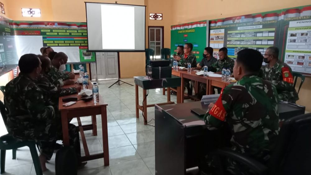Di katakana Dansatgas sebelum memulai rapat, pagi ini saya kembali memimpin rapat, di hadiri oleh seluruh koodinator pembangunan sasaran fisik TMMD Ke 111.