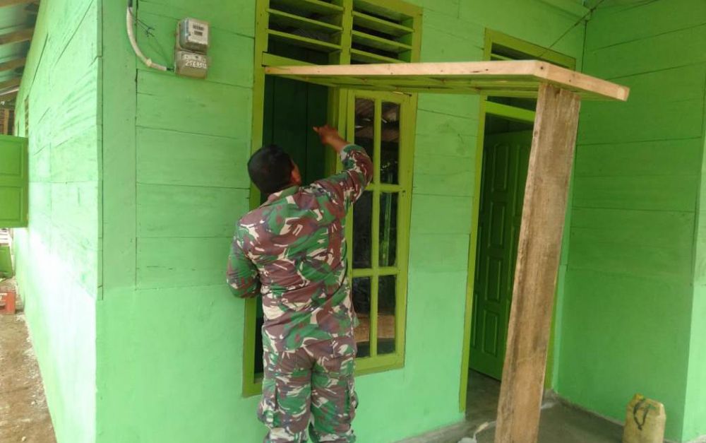 Tidak hanya di renovasi, rumah tersebut kita bangun dari awal/dari nol yaitu dengan membangun dari pondasi sampai berdiri seperti terlihat hari ini, urai Dansatgas.