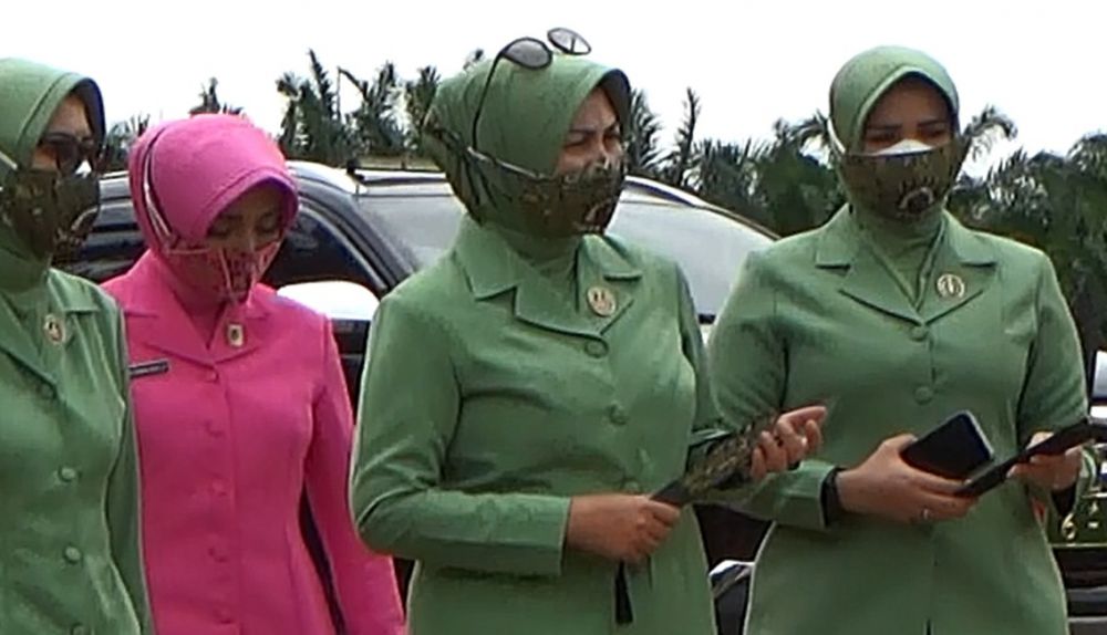 JAMBIUPDATE.CO, JAMBI- Ny. Dewi Zulkifli Ketua Koorcab Rem 042/Gapu Jambi di damping Ketua Persit KCK Cabang XXVII Dim 0420 Ny. Vika Tomi beserta persit lainnya hadiri acara penutupan TMMD Ke 111 Kodim 0420/Sarko.