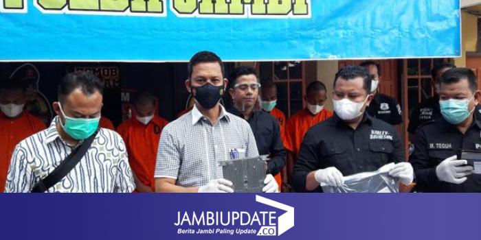 JAMBIUPDATE.CO, JAMBI- Tim Terpadu Ditreskrimum Polda Jambi, Jatanras Polda Sumatera Selatan (Sumsel) dan Polres Merangin berhasil amankan tujuh orang tersangka pencurian komponen alat berat, Jumat (16/7).