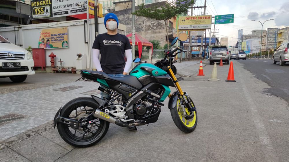 JAMBIUPDATE.CO, JAMBI – Trend Modifikasi menjadi hal yang tidak lekang oleh waktu. Banyak gaya modifikasi yang dilakukan oleh pemilik sepeda motor di Indonesia. Dari perubahan total hingga modifikasi minimalis. Seperti Lius salah satu pemilik MT-15 Asal Jambi, berbekal Yamaha MT – 15 Lius merombak motor kesayangan dengan tema hyper naked, imajinasi ini langsung muncul saat melihat karakteristik MT Series yang sangar dan agresif. Tidak banyak mengubah tampilan yang ada, Lius menambahkan beberapa modifikasi untuk sektor kaki – kaki dan swing arm yang lebar guna mengakomodir ban MT-15 yang cukup besar.