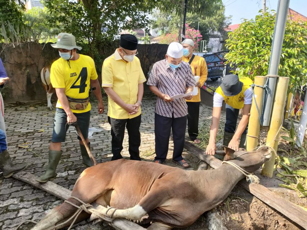 JAMBIUPDATE.CO, JAMBI- DPD Golkar Provinsi Jambi melakukan penyembelihan hewan kurban sebanyak 5 sapi, Rabu (21/7).