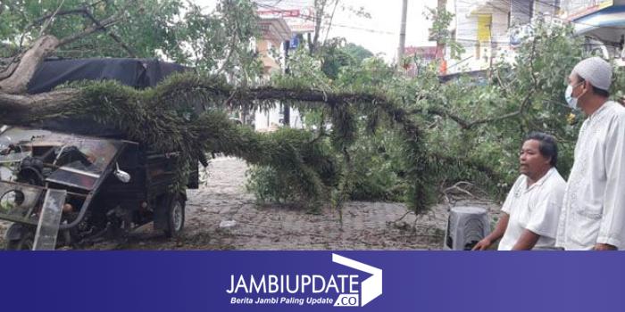 JAMBIUPDATE.CO, JAMBI- Sebuah pohon tua tumbang di kawasan Broni, depan Kampus Universitas Batanghari, Kota Jambi Rabu (21/7) sore.