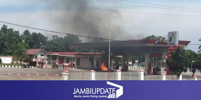 JAMBIUPDATE.CO, MUARATEBO- SPBU 24.372.23 milik PT Trimutha Jaya Mandiri yang berada di Jalan litas Tebo-Jambi KM 5 tepatnya di Kelurahan Tebing Tinggi RW 06 sekira pukul 13.40 WIB Rabu (28/7) terbakar.