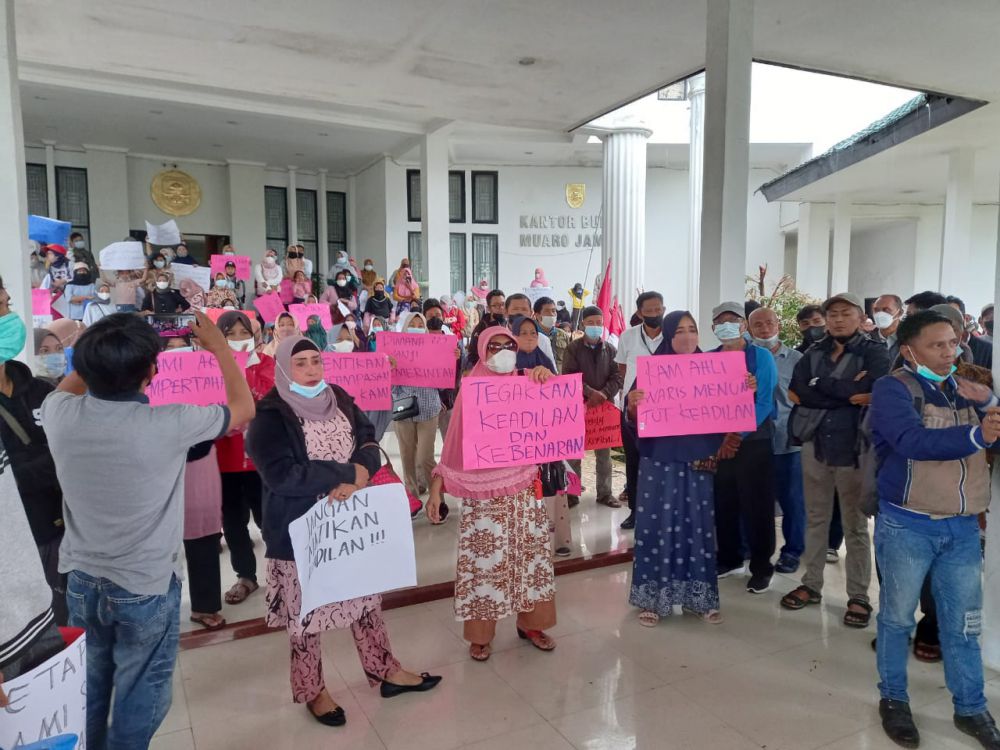 JAMBIUPDATE.CO, SENGETI- Ditenga guyuran hujan yang cukup deras, Senin (13/9) pagi ratusan orang melakukan aksi demonstrasi di Kantor Bupati Muaro Jambi, dimana ratusan orang tersebut meminta Bupati untuk menetapkan mereka sebagai masyarakat Hukum Adat Kabupaten Muarojambi.