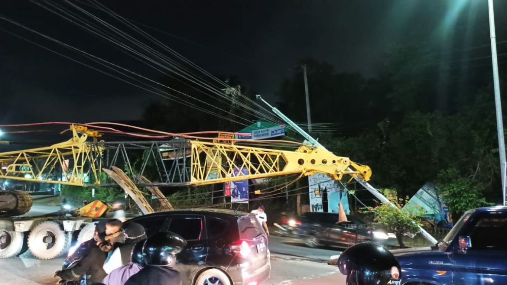 Namun, ketika hendak berbelok ke kiri simpang tiga lampu merah, besi alat berat crane menyenggol tiang CCTV hingga patah. "Iya tadi kejadiannya sekitar jam 7, kencang tadi bunyinya, pas saya lihat ada mobil crane itu nyenggol tiang, kalau korban jiwa tidak ada, " kata Aldian.