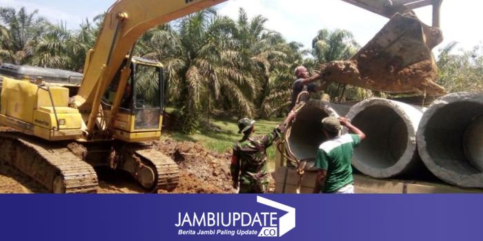 JAMBIUPDATE.CO, TEBO - Komandan SSK TNI Manunggal Membangun Desa (TMMD) ke-112 Kodim 0416/Bungo Tebo, Kapten Inf Zulkarnaini menyebutkan, 3 dari 6 titik sasaran gorong-gorong selesai dipasang.