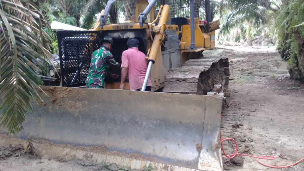 JAMBIUPDATE.CO, TEBO - Sejak dibukanya pelaksanaan kegiatan TNI Manunggal Membangun Desa (TMMD) ke 112 Kodim 0416/Bute yang dipusatkan di Kelurahan Sungai Bengkan dan Desa Kunangan Kecamatan Tebo Ilir Kabupaten Tebo jauh-jauh hari masyarakat sudah ikhlas dan merelakan lahan serta beberapa batang pohon sawitnya di tebang untuk dibuat jalan.