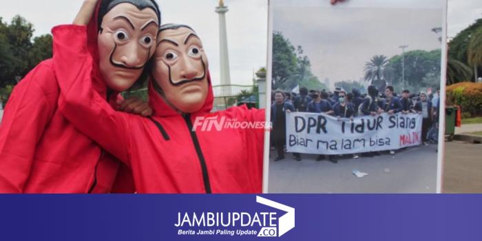 Sejumlah masyarakat yang tergabung dalam #bersihkanindonesia menggelar aksi teatrikal dengan memakai topeng dan membawa bingkai foto di kawasan Monas, Jakarta, Selasa (15/12). (Issak Ramdhani / Fajar Indonesia Network)