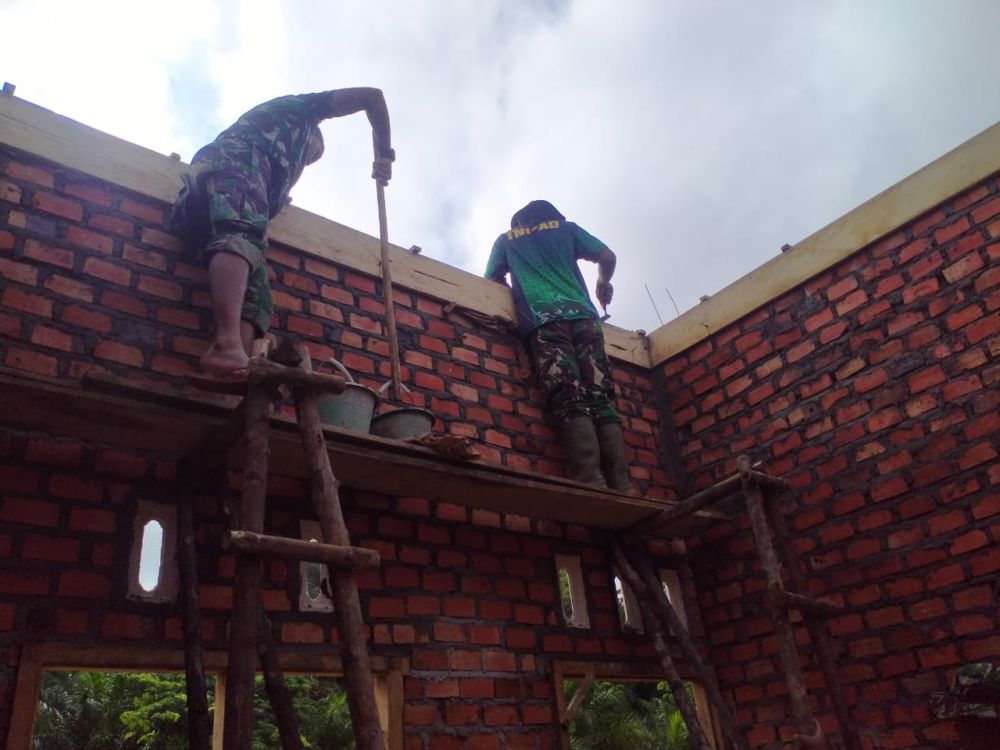 Terlihat satgas bersama warga berjibaku untuk mengecor sloof agar bangunan itu tetap kokoh serta hasil bangunannya itu bisa maksimal. Sloof adalah elemen krusial pada struktur dasar bangunan.
