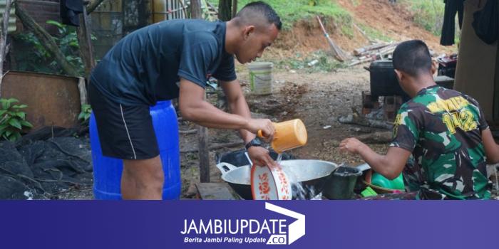 JAMBIUPDATE.CO, TEBO - Satgas TMMD ke-112 Kodim 0416/Bungo Tebo membantu ibu Asuh mencuci piring usai saparan pagi bersama keluarga asuh di simpang Semangko, Kelurahan Sungai Bengkal, Kecamatan Tebo Ilir, Senin (27/9/2021).