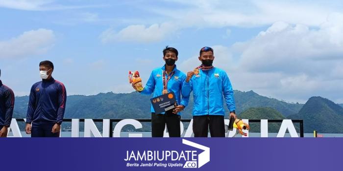 JAMBIUPDATE.CO, JAYAPURA - Tim dayung Jambi berhasil menyabet tiga medali dalam laga final cabor dayung nomor Canoeing putra 1000m PON XX Papua di teluk Youtefa, Kota Jayapura, Papua, Selasa (28/9/2021)