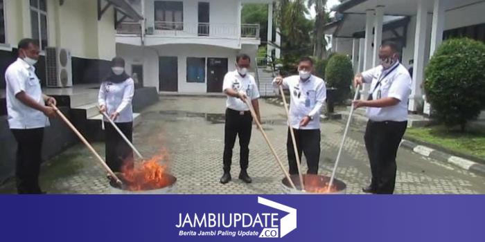 Pemusnahan tersebut dilakukan dengan cara di bakar, pada Rabu (29/9) di halaman Kanwil Kemenkumham, Pall Lima, Kota, Baru Jambi .
