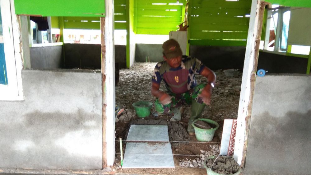 "Pemasangan keramik betujuan agar masjid itu terlihat bersih, rapi dan nyaman digunakan bila beribadah. Karena selama ini memang lantainya hanya lantai semen biasa saja. Hingga sekarang pemasangan masih terus berjalan,"kata Dandim.