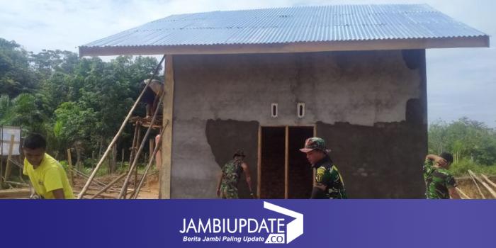 Sertu Sutrisno, anggota satgas TMMD Ke-112 Kodim 0416/Bungo Tebo, mengatakan dirinya bersama dengan warga desa yang juga tukang batu dalam pembangunan rumah terus kebut pengerjaan plester dinding rumah milik Herlina.