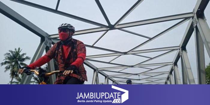 JAMBIUPDATE.CO, JAMBI - Unik, mungkin kata tersebut patut disematkan pada sosok seorang Walikota Jambi H. Syarif Fasha yang punya cara tersendiri dan terbilang unik dalam memperingati Hari Batik yang tepat jatuh pada tanggal 2 Oktober. Walikota yang terkenal dengan kegemarannya berolahraga sepeda tersebut, merayakannya dengan bersepeda mengenakan baju Batik Jambi.
