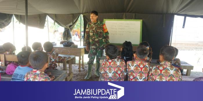 JAMBIUPDATE.CO, TEBO - Satgas TMMD ke-112 Kodim 0416/Bute bukan hanya melakukan gebrakan pembangunan fisik saja di lokasi TMMD, melainkan juga peduli pembangunan mental anak generasi bangsa.