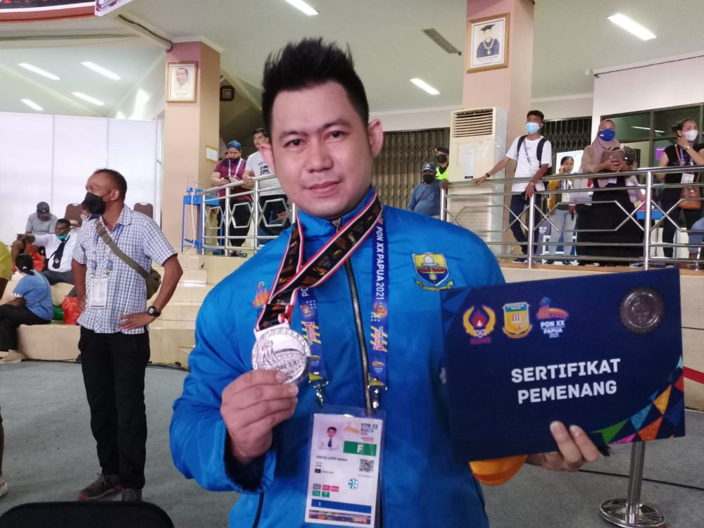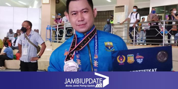JAMBIUPDATE.CO, JAYAPURA - Cabor angkat berat Jambi menyabet medali perak di ajang olahraga PON XX Papua 2021, Rabu (13/10). Medali perak tersebut dipersembahkan oleh lifter Abdul Latif Mana lewat angkat berat kelas 93 kg putra.