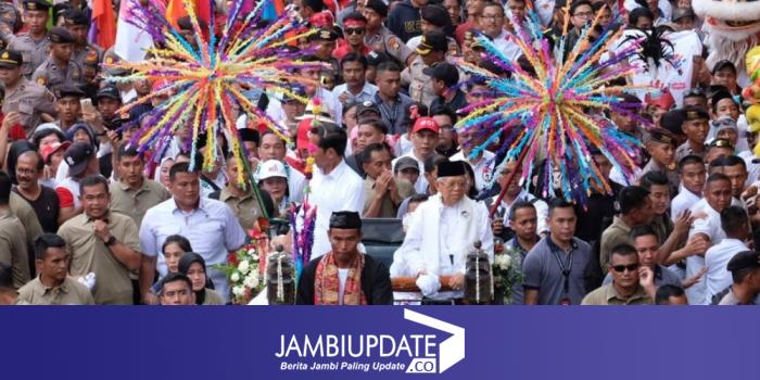 Capres No urut 01 Jokowi - Amin saat hadir memgunakan kreta delman menyambut masyarakat kota Tangerang, Kawasan Pondopo Kota Tangerang, (7/4/2019). Dalam Pidato Jokowi meminta masyarakat kota tangerang tidak gampang terhasut oleh berita hoaks. (Faisal R Syam / FAJAR INDONESIA NETWORK.)