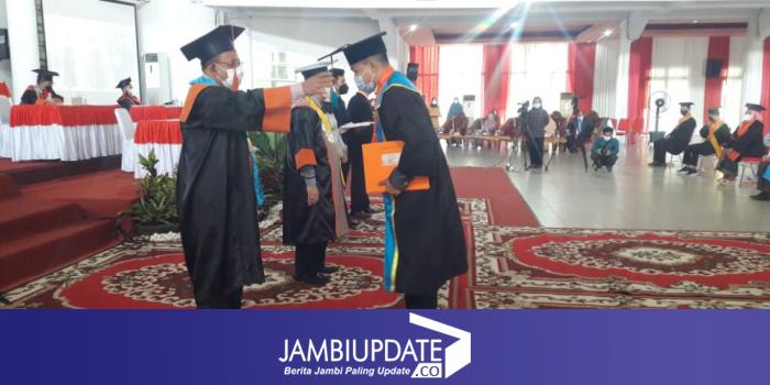 JAMBIUPDATE.CO, JAMBI - Sebanyak 1.927 mahasiswa dari berbagai jenjang dan strata resmi dinyatakan lulus dan mengikuti wisuda secara virtual, Sabtu (23/10) dari Balairung Kampus Pinang Masak, Unja Mendalo. Hal ini setelah dilakukan Rapat Terbuka Senat Universitas Jambi dalam rangka wisuda ke-96 program Doktor, Magister, Profesi, Sarjana dan Diploma semester genap tahun akademik 2021/2022.