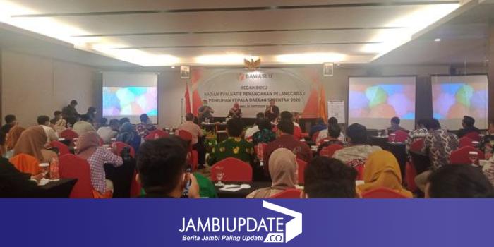 JAMBIUPDATE.CO, JAMBI- Bawaslu Provinsi Jambi menggelar Bedah Buku Kajian Evaluatif Penanganam Pelanggaran Pemilihan Tahun 2020 di Hotel Siwsbell, Selasa (26/10).