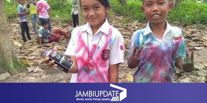 Aksinya viral di media sosial. Tampak sebuah foto dua bocah SD laki-laki dan perempuan berpose usai mencorat coret baju seragam SD yang dikenakannya.
