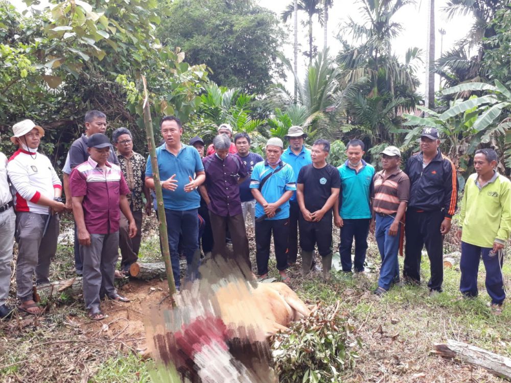 JAMBIUPDATE.CO, MUARASABAK - Sebagai bentuk rasa syukur pada Hari Ulang Tahun Kabupaten Tanjung Jabung Timur dan Himpunan Keluarga Kerinci (HKK) ke 22, HKK Kabupaten Tanjung Jabung Timur (Tanjabtim) melaksanakan penyembelihan satu ekor sapi, yang dilakukan di rumah sesepuh HKK di Kelurahan Parit Culum I, Kecamatan Muara Sabak Barat, Jumat (29/10).