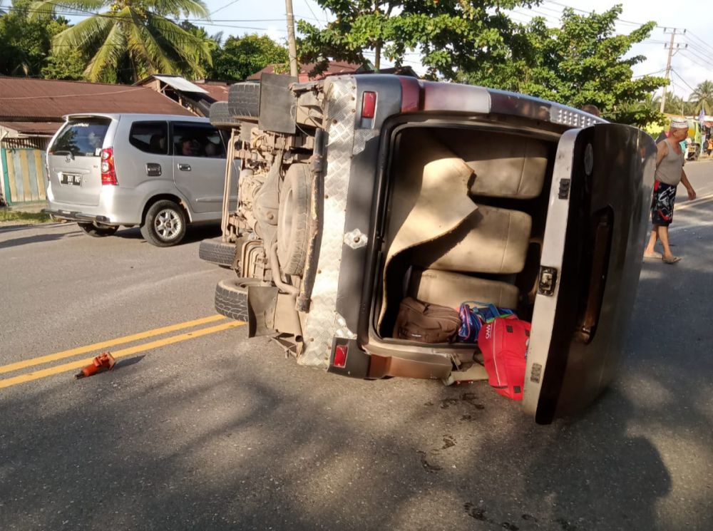 JAMBIUPDATE.CO, MERANGIN-Minibus dengan nomor Polisi BH 7312 R milik Pemerintah Kota Sungai Penuh yang membawa tim PS Kota Sungai Penuh mengalami kecelakaan tunggal di Jalan Lintas Sumatera, Kelurahan Dusun Bangko, pada Minggu sore sekitar pukul 17.00 WIB.