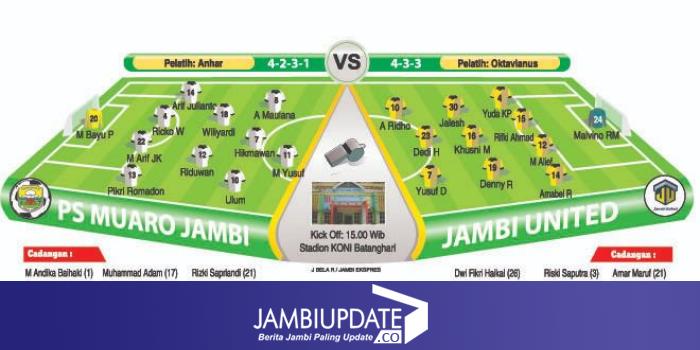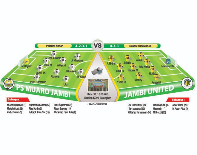 Pelatih PS Muaro Jambi, Anhar akan menerapkan pola pakem 4-2-3-1, sementara arsitek Jambi United Oktavianus akan menggunakan pola menyerang 4-3-3.