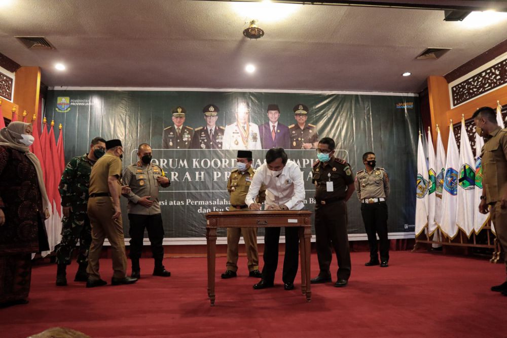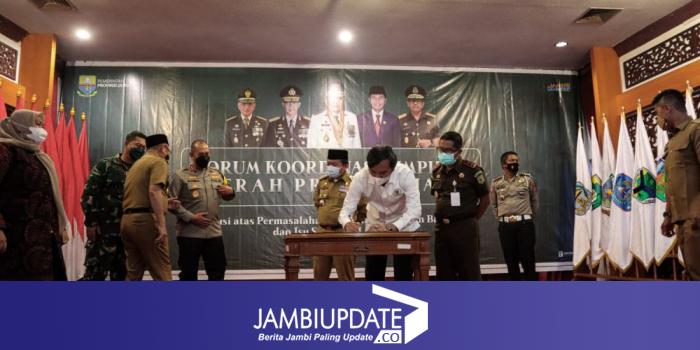 JAMBIUPDATE.CO, JAMBI – Menyikapi persoalan angkutan batubara yang menimbulkan sejumlah masalah di provinsi Jambi, mulai dari kemacetan, kerusakan jalan, sampai menelan korban jiwa, Forum Koordinasi Pimpinan Daerah (Forkopimda) Provinsi Jambi menggelar Focus Group Discussion (FGD) untuk mencari solusi dari permasalah tersebut. FGD digelar di Auditorium Rumah Dinas Gubernur Jambi, Senin (15/11/2021).