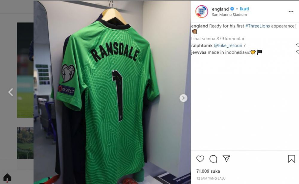 Dalam unggahan tersebut, kerah jersey milik kiper Aaron Ramslade yang diproduksi Nike bertuliskan “Made in Indonesia. Fabrique en Indonesia”. Postingan tersebut juga ditulis deskripsi singkat “A ThreeLions debut for @AaronRamsdale98!”.